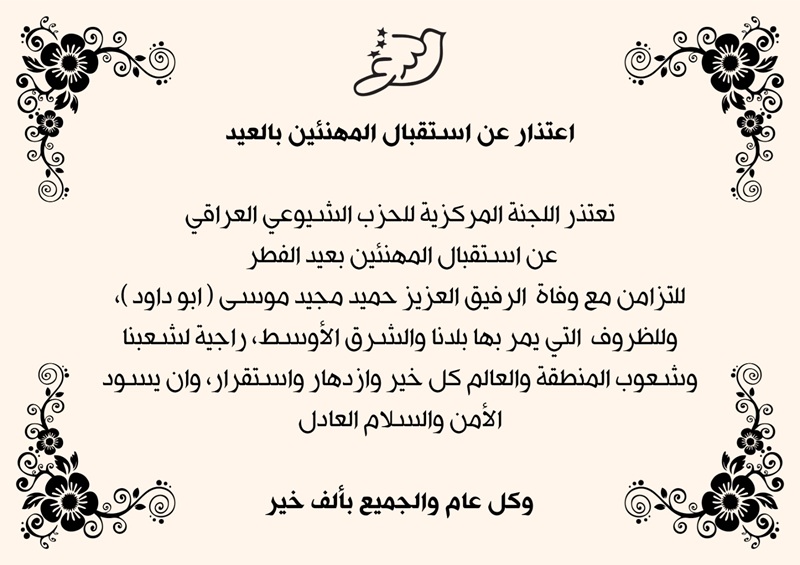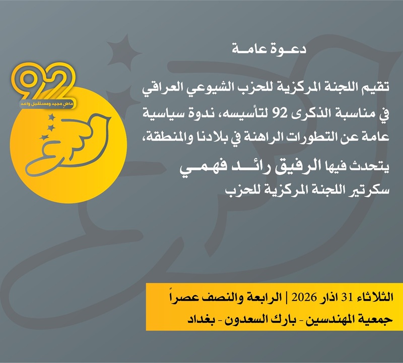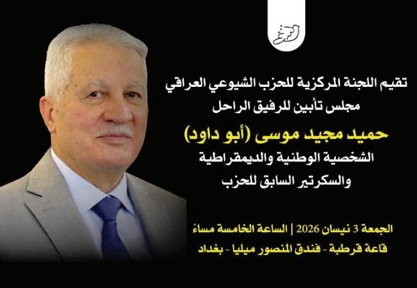 تنعى اللجنة المركزية للحزب الشيوعي العراقي القائد الشيوعي، المنا...
