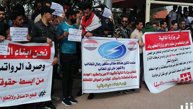 اللجنة المركزية لعقود الكهرباء في البصرة، ذكرت في بيان لها، إن "8743 عامل وفني وإداري يعملون منذ 14 عاما بأجور قليلة، ولم تصرف رواتبهم منذ ثلاثة أشهر في ظل وباء كورونا وتواجد الكوادر العاملة في خط الصد الاول لتوفير التيار الكهربائي".