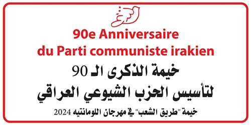 ويتطلع الحزب الشيوعي العراقي والمشاركون في خيمة صحيفته المركزية "طريق الشعب" الى تضامن جميع المساهمين في مهرجان اللومانتيه وزواره، مع شعبنا العراقي في نضاله من أجل التغيير الشامل وبناء دولة مدنية ديمقراطية تحترم حقوق الإنسان، وتعزز مشاركة المرأة، وتحقق العدالة الاجتماعية.