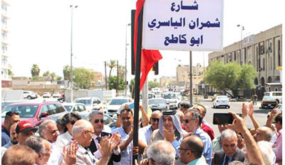 بعد هذه الكلمة الختامية توجه المحتفلون، يتقدمهم مجموعة من قيادة الحزب، إلى وسط الشارع لإزاحة الستار عن القطعة الكبيرة التي تحمل اسم شمران الياسري(ابو كاطلع) تخليدا لنضاله وكتاباته الصحفية والادبية والاذاعية التي اتسمت بقربها من نبض الشارع وملامستها هموم الناس وتعبيرها عن طموحاتهم بحياة حرة كريمة.