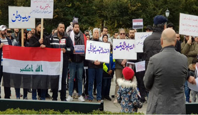 شارك حشد كبير من ابناء الجالية العراقية والعربية والنرويجية وجنسيات اخرى يوم السبت الموافق 5/10/ 2019 نددوا فيها بالإجراءات القمعية التي تمارسها قوات وعصابات النظام العراقي ضد المتظاهرين السلميين والعزل. رافعين الشعارات والأعلام العراقية التي جسدوا فيها حبهم لوطنهم واعتزازهم بأبناء شعبهم الأبطال الذين يواجهون الموت بصدور عارية دفاعا عن حقهم في الحياة الحرة والكريمة.