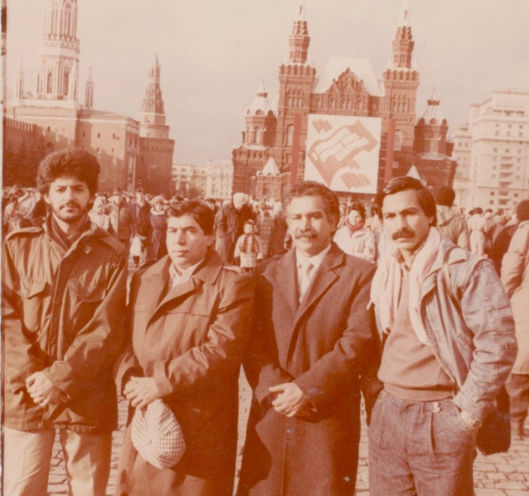 بعد اقامتنا في موسكو عدة اسابيع تعرفنا على مجموعة كبيرة من العراقيين المقيمين في موسكو من بينهم يوسف ابو الفوز وذلك عام 1991 م - مرفق صورة في الساحة الحمراء في موسكو مع ابو الفوز وأخيه جاسم هداد وابراهيم باقرابراهيم -.