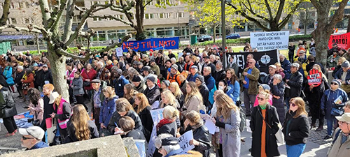 نظم عدد من منظمات المجتمع المدني السويدية في العاصمة” ستوكهولم" تظاهرة من أجل السلام ومناهضة انضمام السويد إلى حلف الناتو العسكري على إثر تداعيات الحرب الروسية الأوكرانية، وذلك بتاريخ السابع من آيار/ 2022، حيث كان التجمع في ساحة "نورا بان توري" الواقعة في قلب العاصمة مقابل اتحاد نقابات عمال السويد.