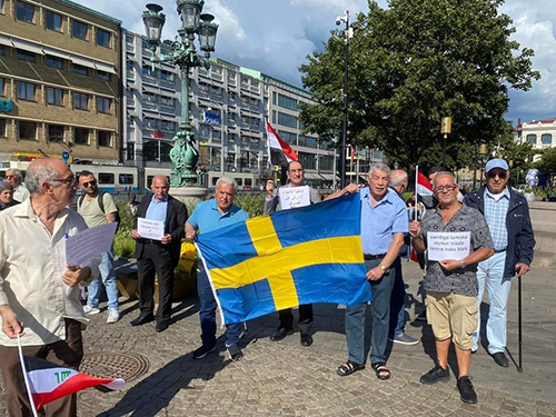 رفعت خلالها الأعلام العراقية وعلم السويد، وشعارات باللغة السويدية والعربية، مستنكرةً العمل العدواني الغاشم بالقصف المدفعي على موقع سياحي مدني في محافظة دهوك راح ضحيته تسعة من الأبرياء من ضمنهم طفل، و 31 مصابا. ودعت المنظمات الدولية لإدانة هذا العمل الشائن، وسحب القوات التركية من الأراضي العراقية.