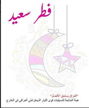 اللجنة التنسيقية للتيار الديمقراطي العراقي والهيئة الإدارية لجمعية بغداد الثقافية – أستراليا تتقدمان بتهنئة بمناسبة حلول عيد الفطر السعيد