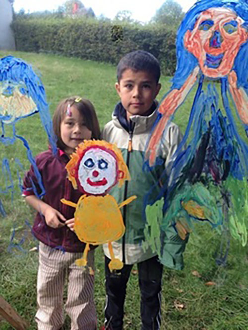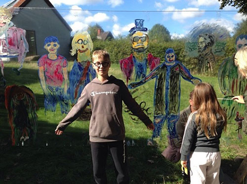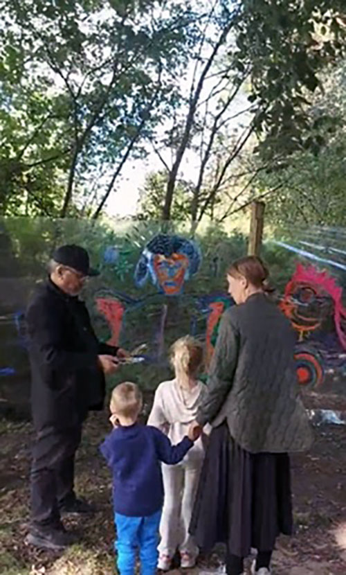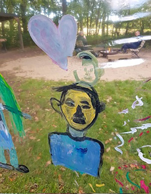 توزع الجمهور على الحديقتين الخلفية والامامية مستمتعين بالدفء واشراقة الشمس ورحابة الضيافة وسحر الألوان ودهشة امتزاجها بالفرشاة وتحريكها على اللوحة في ممارسة فردية وجماعية للرسم يقوم بها الأجداد والاباء والابناء لرسم بعضهم البعض الاخر، حيث يتبادل كل منهم الأدوار، رساما تارة وموديلا تارة أخرى.