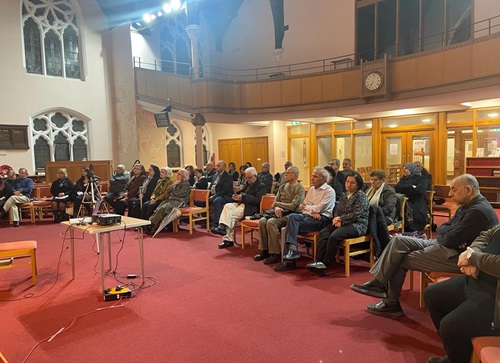 افتتحت الأمسية السيدة ساجدة أموري رئيسة رابطة المرأة في بريطانيا ودعت الحضور الى وقفة دقيقة صمت على أرواح شهداء غزة.